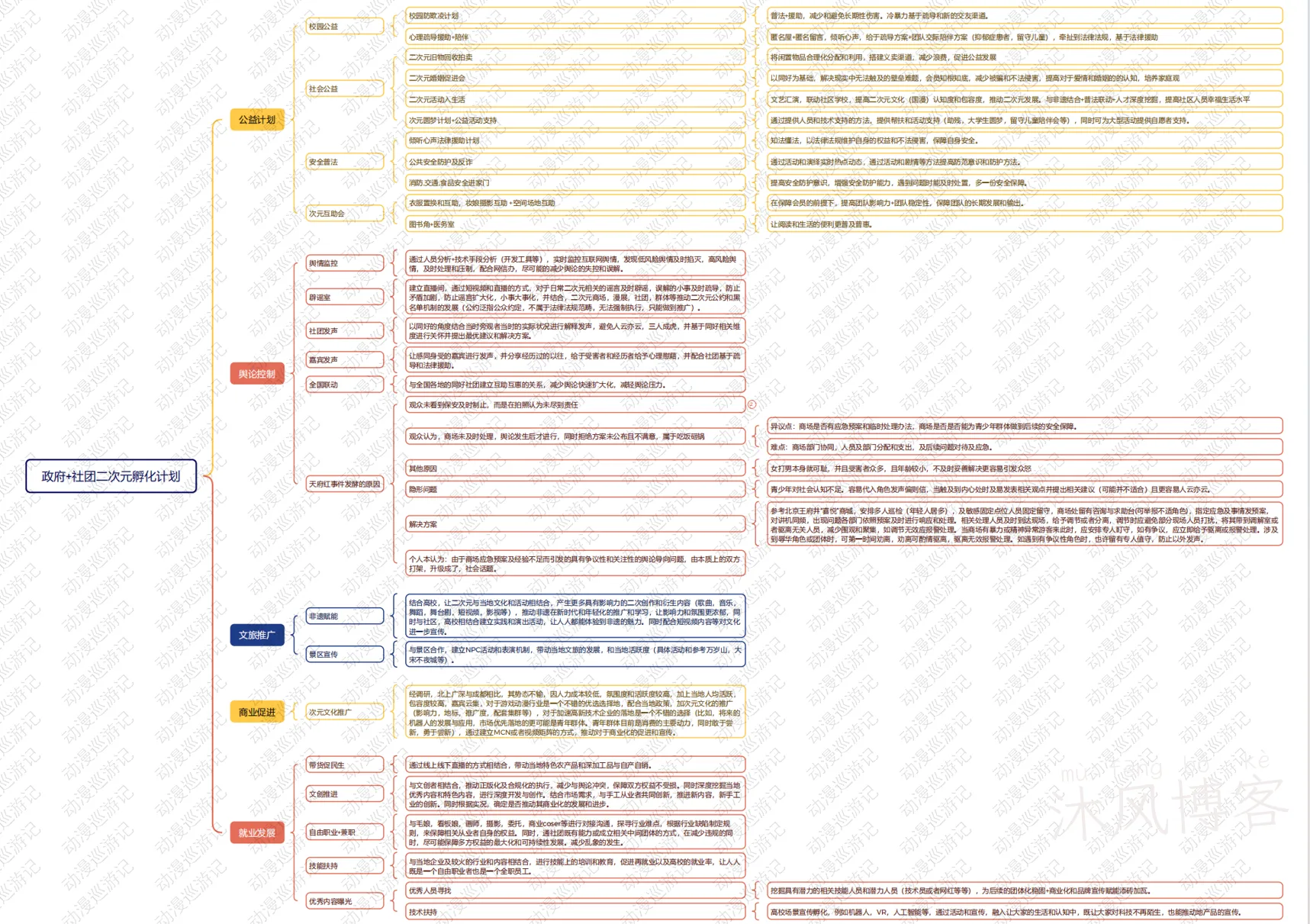 这张图片展示了一个宏大且系统性的**“政府+社团二次元孵化计划”**思维导图。该计划旨在引导二次元文化与主流社会价值深度融合,通过规范化运作,实现社会效益与商业价值的双赢。